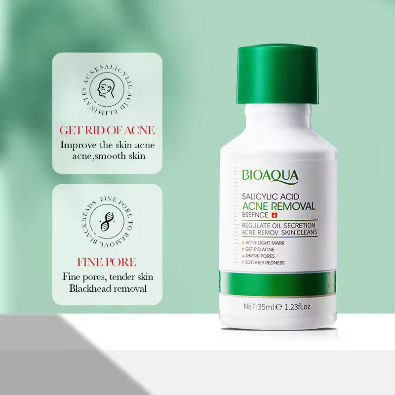BIOAQUA Salicylic Acid Acne Removal Serum 35ml is a targeted skincare solution designed for acne-prone skin. Infused with Salicylic Acid, this serum helps exfoliate dead skin cells, unclog pores, reduce excess oil, and prevent future breakouts while calming inflammation and redness.