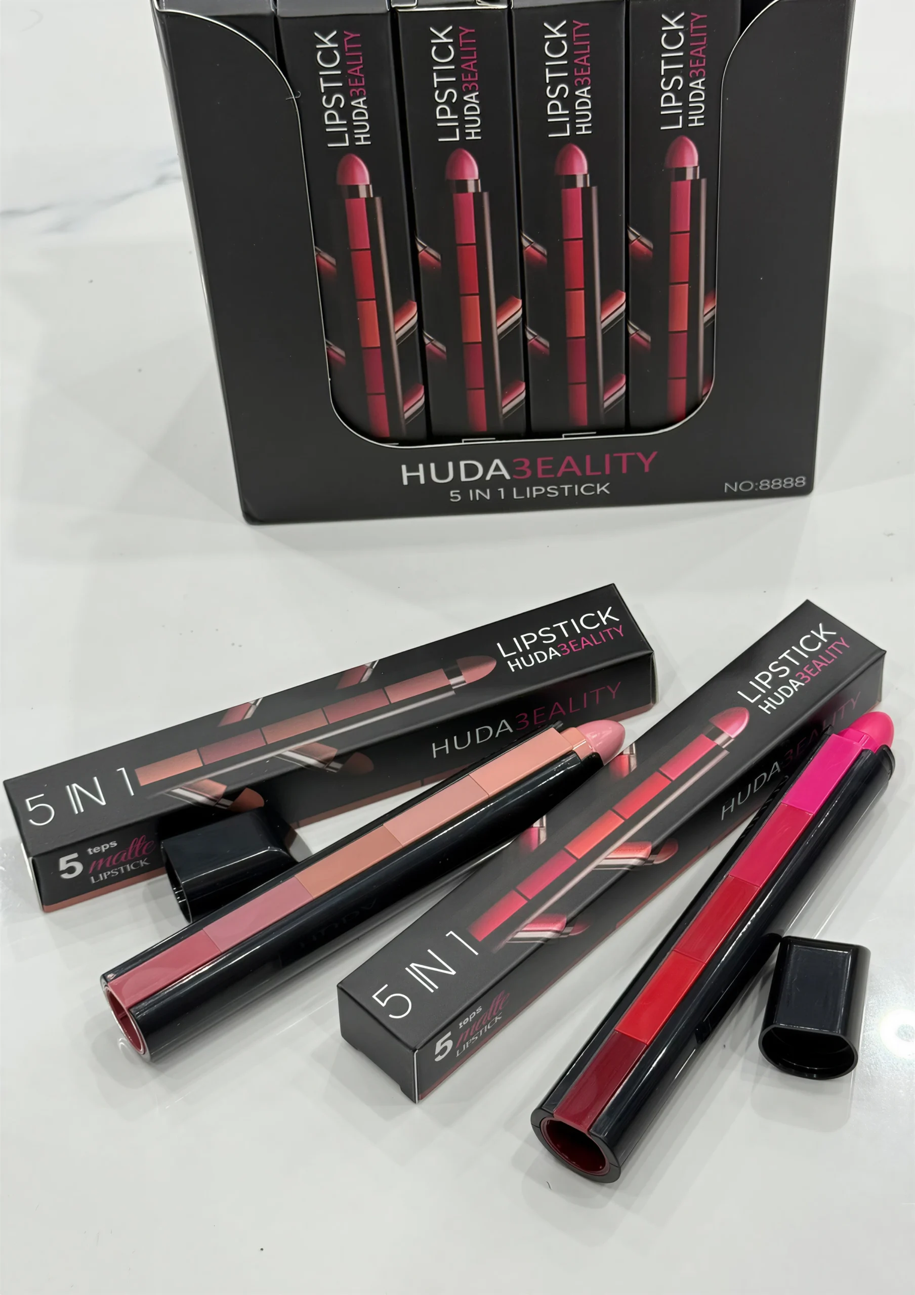 Discover versatile beauty with the HUDABEALITY 5 in 1 Lipstick, designed to give you five stunning lip looks in one innovative product. Featuring rich pigmentation and a creamy, smooth formula, this lipstick glides effortlessly on the lips to deliver long-lasting, comfortable wear. Perfect for everyday use or special occasions, it allows you to switch between styles with ease—making it ideal for travel and makeup lovers who want variety without carrying multiple products. Elevate your lip makeup with HUDABEALITY for bold, beautiful lips anytime, anywhere.