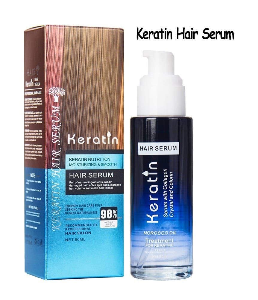 Keratin Hair Serum 80ml is a professional hair care solution designed to restore strength, smoothness, and shine to damaged and frizzy hair. Infused with keratin, this serum helps repair broken hair fibers, reduce split ends, and protect hair from heat and environmental damage.