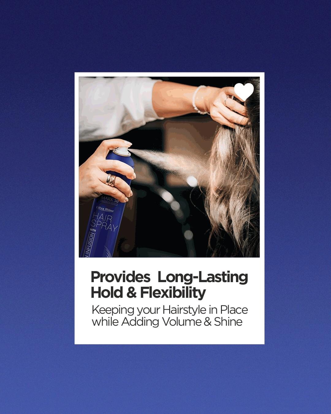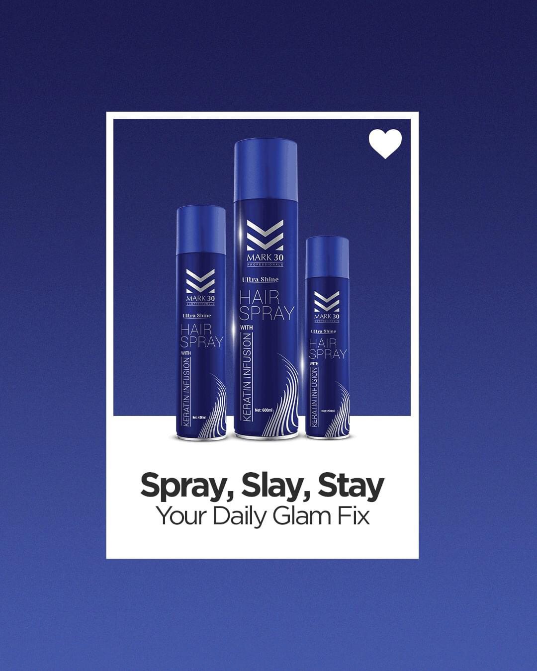 MARK 30 Hair Spray (200ml / 400ml) is a professional hair styling solution designed to give your hair a polished, long-lasting look. This versatile hair spray helps control frizz, maintain volume, and lock in styles without stiffness or residue.