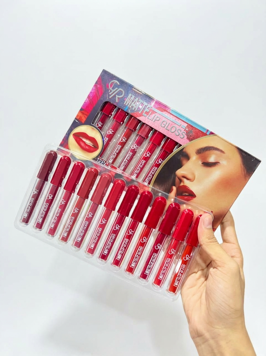 Enhance your lip collection with the Matt Lipgloss Tray, offering a curated selection of richly pigmented matte shades for all occasions. Each lipgloss delivers smooth application, intense color payoff, and long-lasting wear without drying your lips. Perfect for everyday use, professional makeup, or gifting, this tray allows you to mix and match shades to create endless looks. Ideal for makeup lovers and professionals alike, the Matt Lipgloss Tray is a must-have for achieving bold, flawless lips with a matte finish.