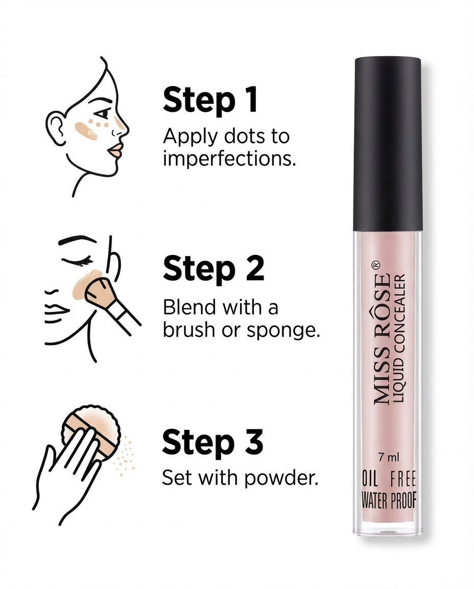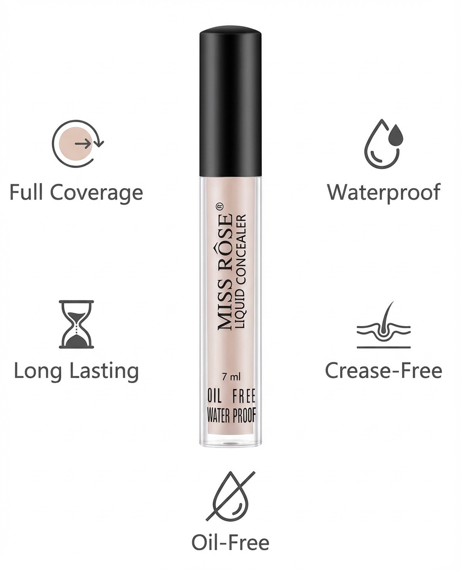 Perfect for daily makeup, professional looks, and special occasions, Miss Rose Liquid Concealer gives you flawless, confidence-boosting coverage every time.