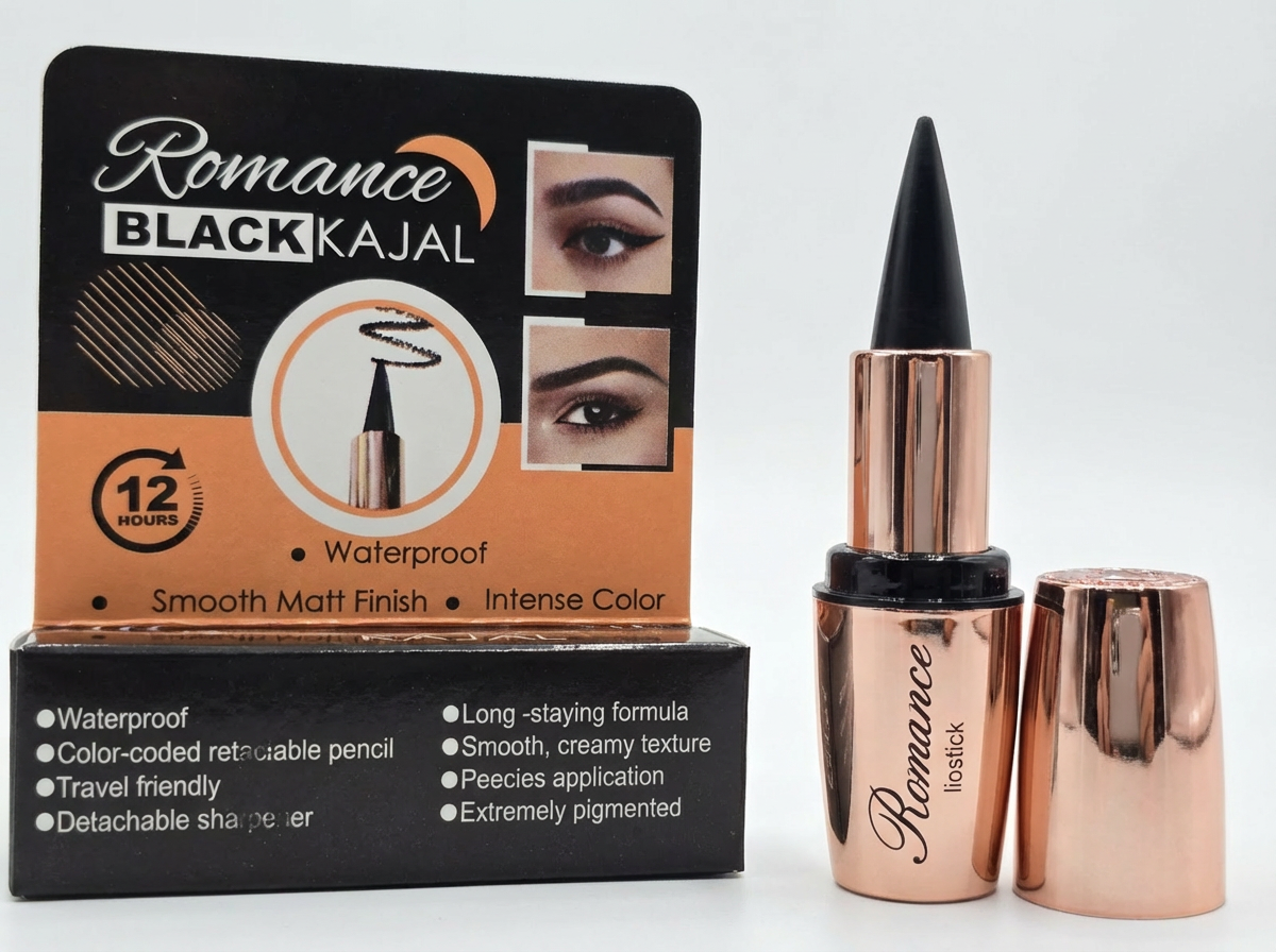 Romance Kajal is designed to enhance your eyes with rich, creamy color that glides effortlessly along the lash line and waterline. Its smooth, lightweight formula provides precise definition, intense pigmentation, and long-lasting wear without smudging or fading.